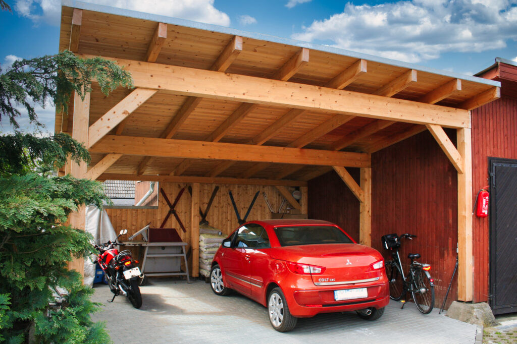 Einen weiteren Vorteil stellen unterschiedlichste Carport-Anbauten dar. So können zusätzlicher Stauraum für Autoreifen, Fahrräder, ganze Abstellräume/Schuppen oder eine geschlossene Überdachung bis zu Ihrem Hauseingang geplant werden. Auch hier setzen wir vor Allem auf die Vielfältigkeit von strapazierfähigem und witterungsbeständigem Holz.